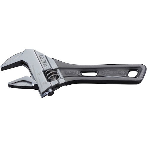 ショートタイプのエビ印ハイブリッドモンキレンチです。軽く、薄く、口開きワイドでスケルトングリップです。ポケットにもすっぽ.....