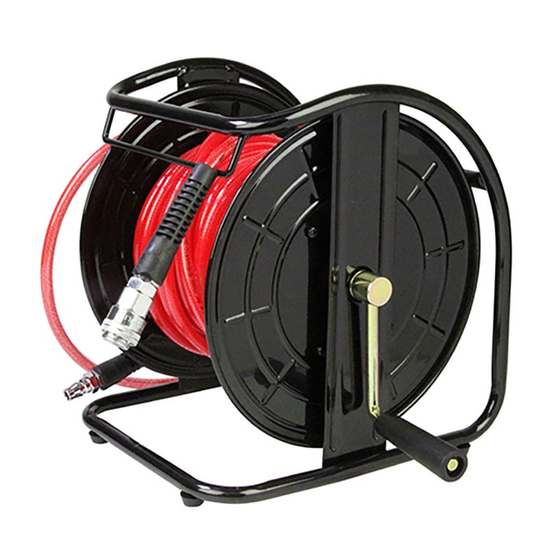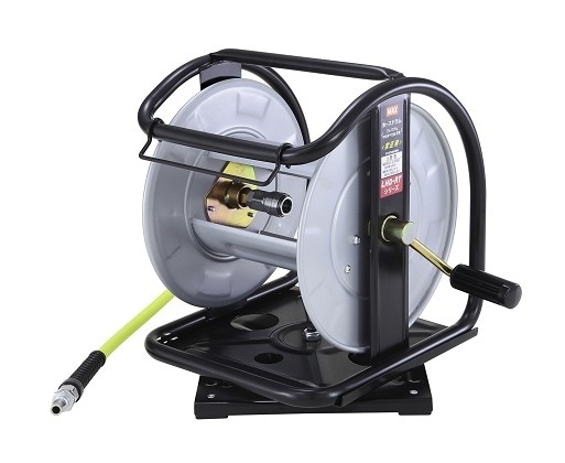 エアホースの引き出しや収納が簡単です。市販のエアホースセットのリールへの巻取。ウレタンエアホースセット(ソケット&プラグ.....