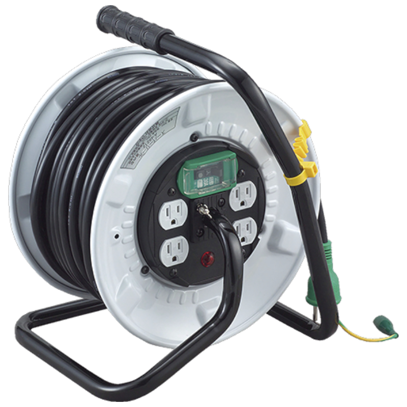 側面に電動工具を接続したままコードの引き出し、巻取りが可能。 ポッキンプラグ付き 定格電源:100V 定格電流:5.....