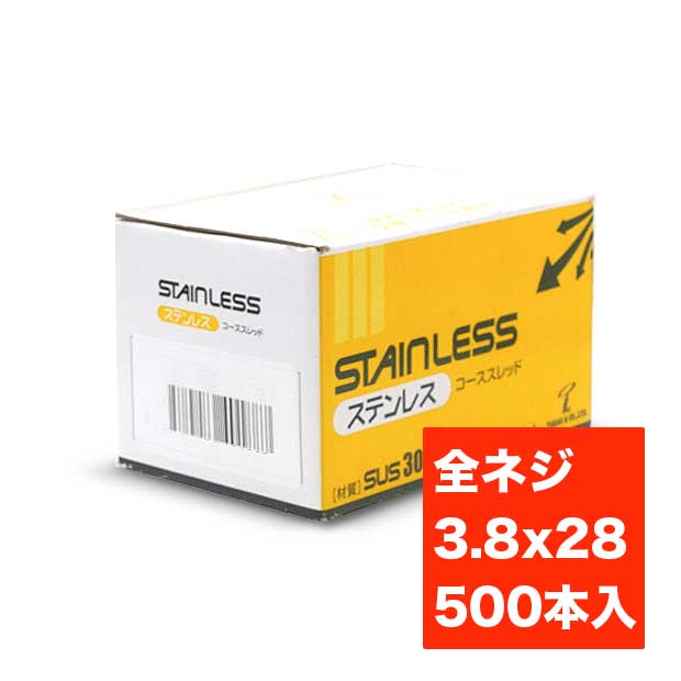 ステンレス コーススレッド(ラッパ) 全ネジ SUS304系 全3.8x28mm (500本入)