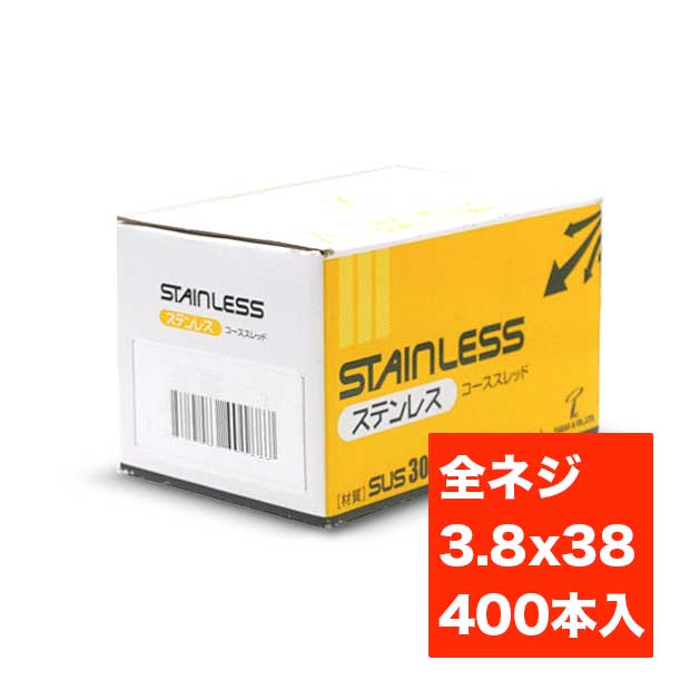 ステンレス コーススレッド(ラッパ) 全ネジ SUS304系 全3.8x38mm (400本入)