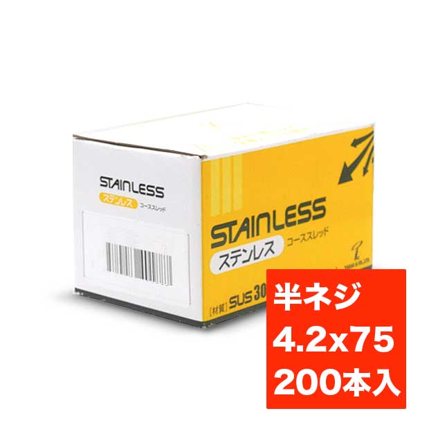 ステンレス コーススレッド(ラッパ) 半ネジ SUS304系 半4.2x75mm (200本入)