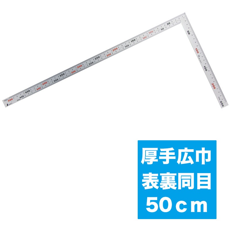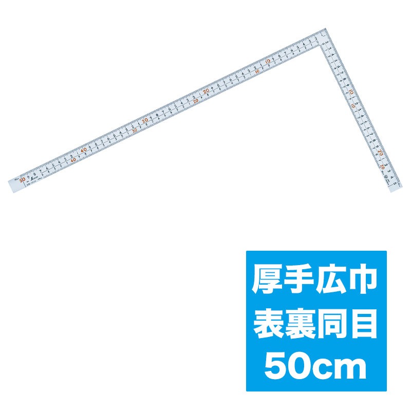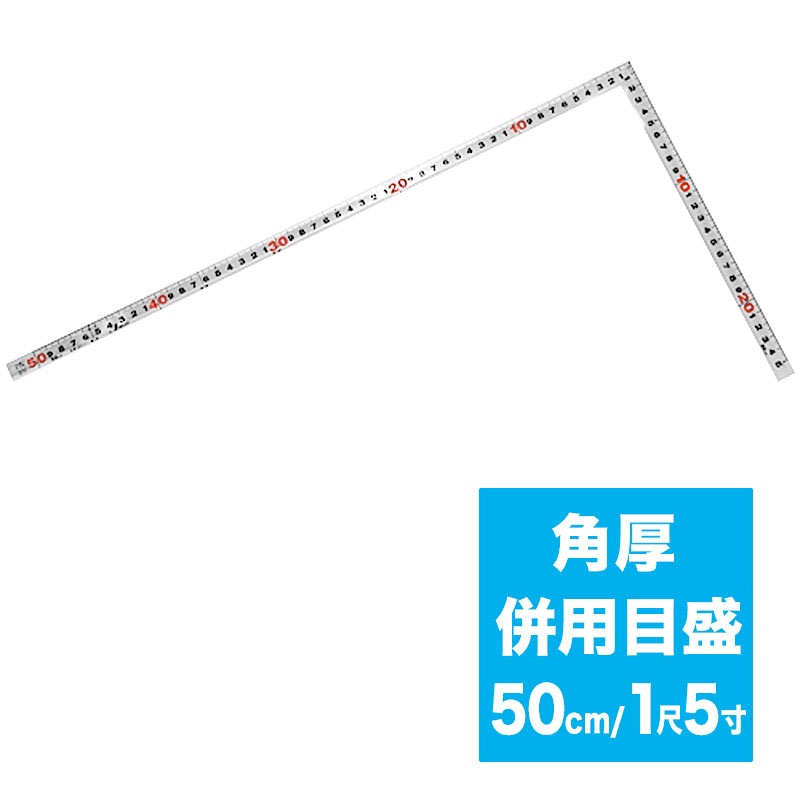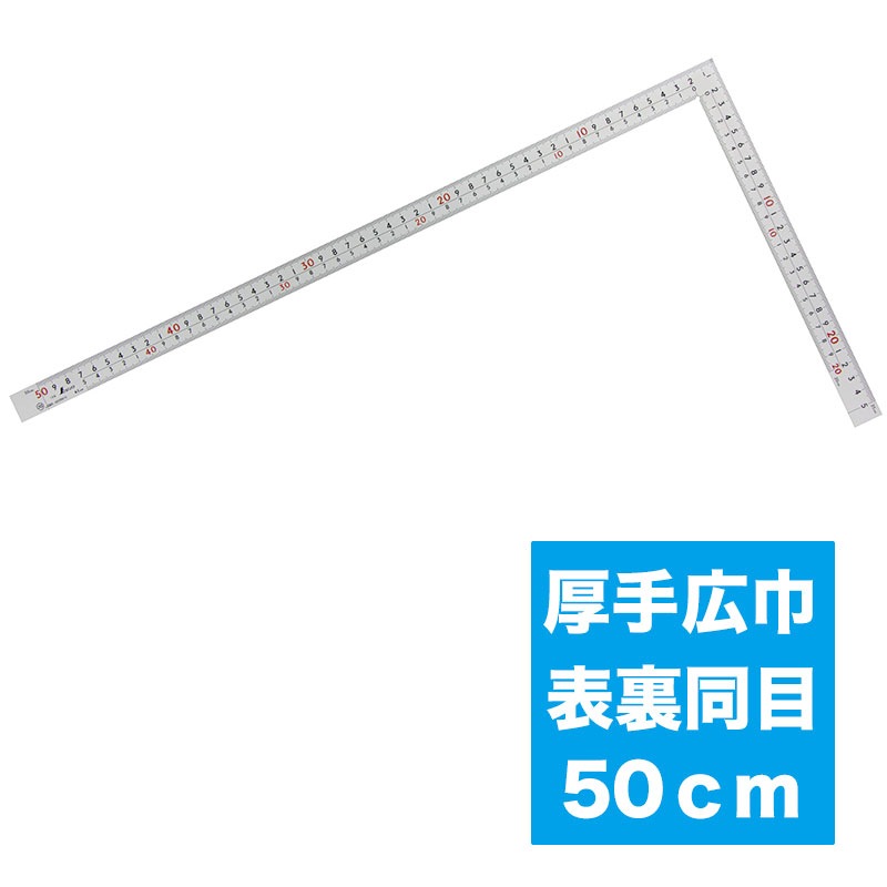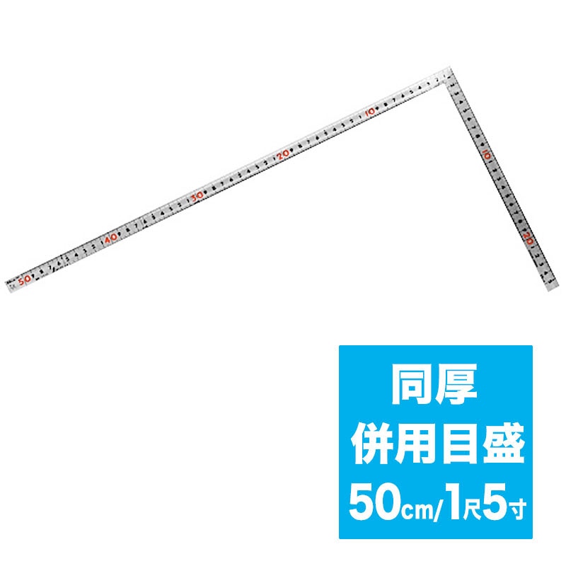 ●角部形状 同厚 ●表目盛 長枝:外目盛 50cm 内目盛 45cm 短枝:外目盛 25cm ●裏目盛 長枝:外目.....