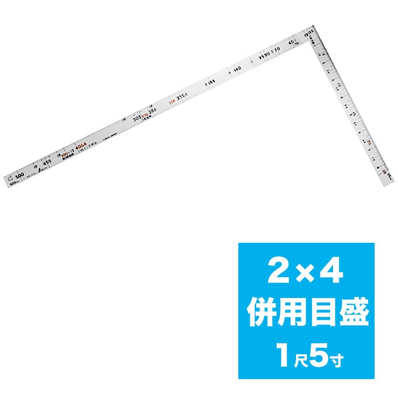 シンワ 10056 曲尺 ツーバイフォー シルバー 2×4/1尺5寸 併用目盛19mm巾