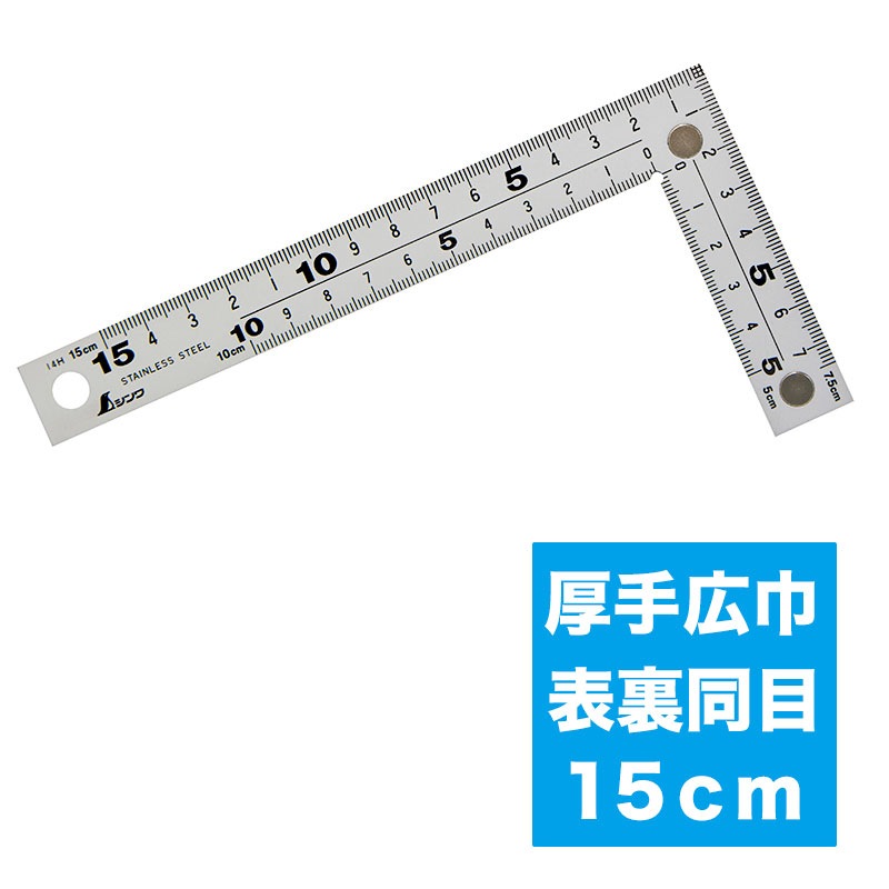 ●角部形状 同厚 ●表目盛 長枝:外目盛 15cm 内目盛 1cmピッチ15cm 短枝:外目盛 7.5cm 内目盛 1.....