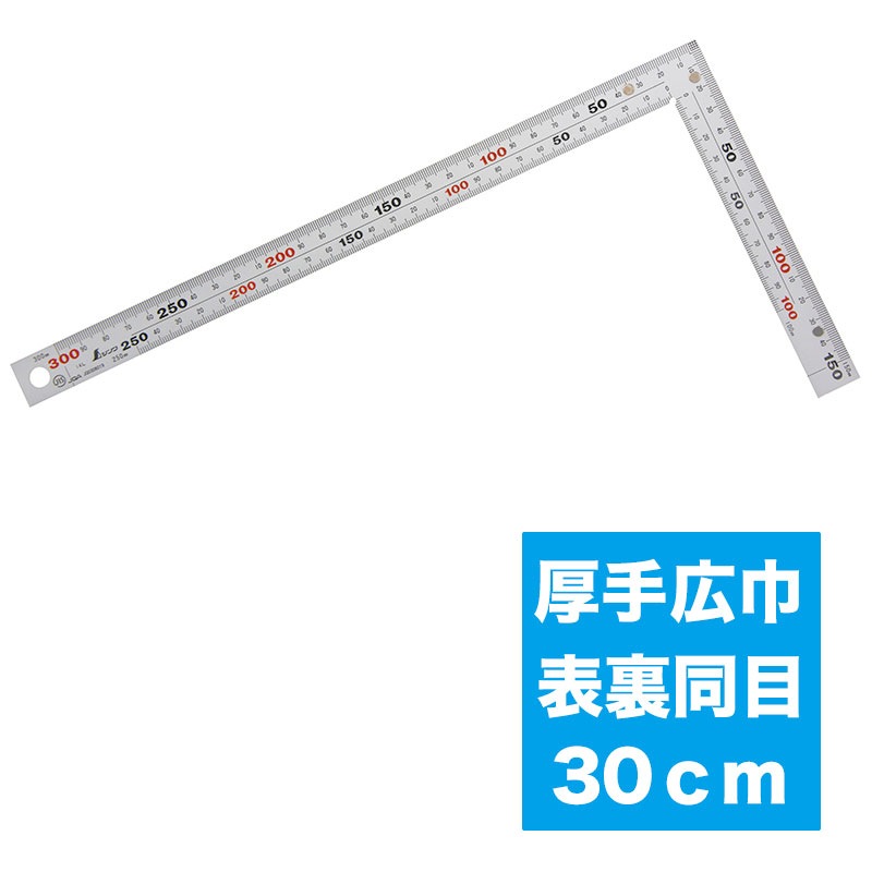 シンワ 10294 曲尺 角厚 シルバー 30cm 表裏同目