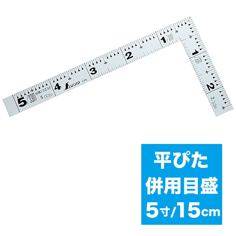 ●角部形状 角厚 ●表目盛 長枝:外目盛 尺5 短枝:外目盛 7.5寸 ●裏目盛 長枝:外目盛 尺5 短枝:外目盛 .....