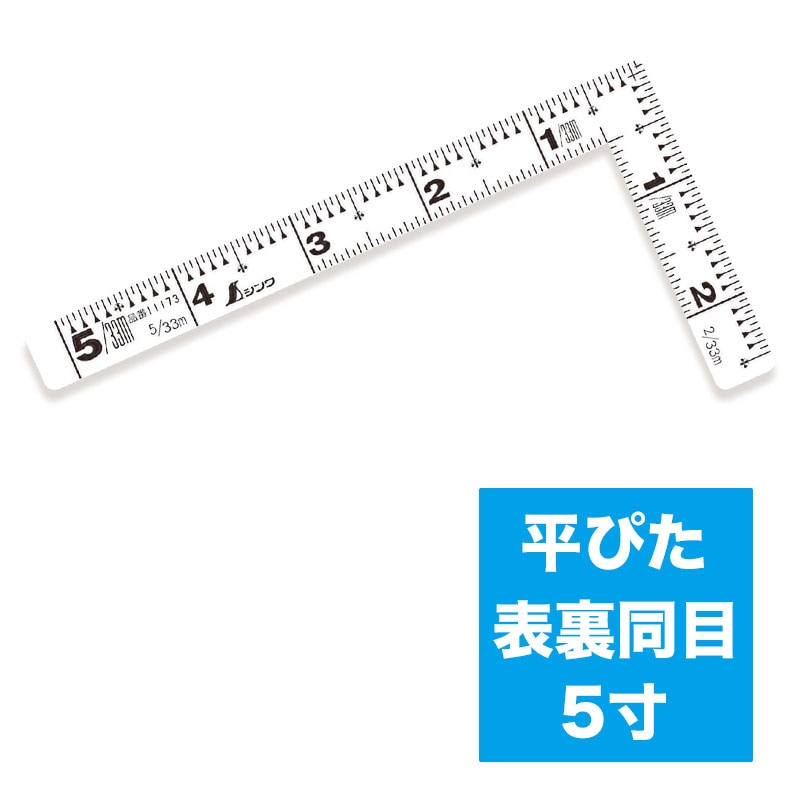 【メール便可】シンワ 11173 曲尺 平ぴた ホワイト 5寸 表裏同目