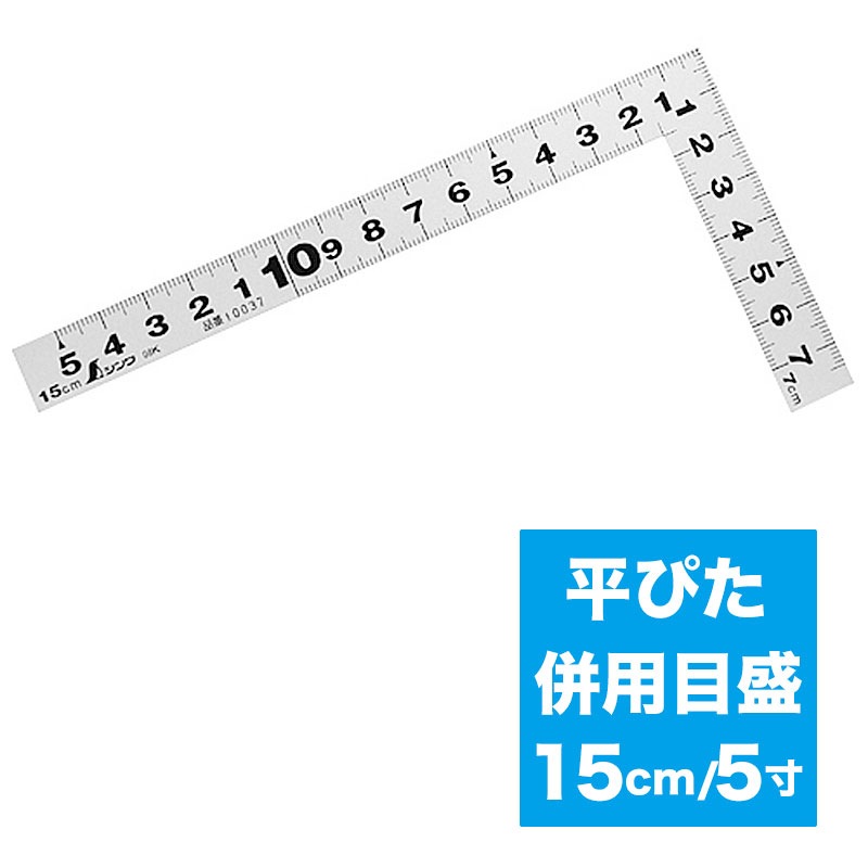 【メール便可】シンワ 10037 曲尺 平ぴた シルバー 15cm/5寸 併用目盛