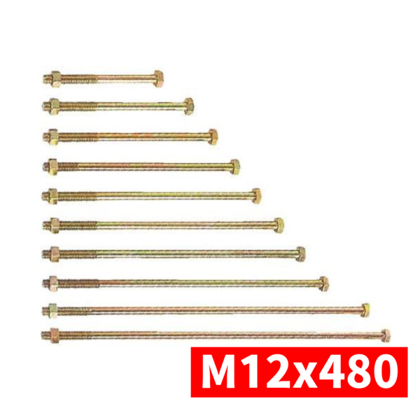 Z六角ボルト M12x480mm(M12六角ナット1個/本) 【1ケース50本 購入で20%引き】