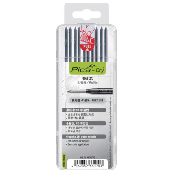 【メール便対応】ピカマーカー 4030 Dry用 水溶性万能タイプ替え芯 黒2B 10本入り