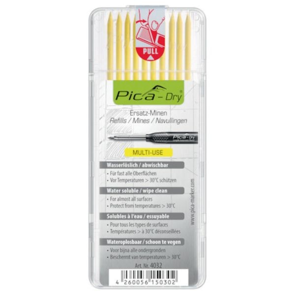 【メール便対応】ピカマーカー 4032 Dry用 水溶性万能タイプ替え芯 黄 10本入り