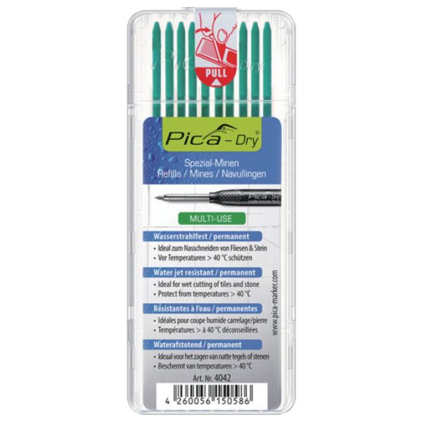 【メール便対応】ピカマーカー 4042 Dry用 ウォータージェット耐性替え芯 緑 10本入り