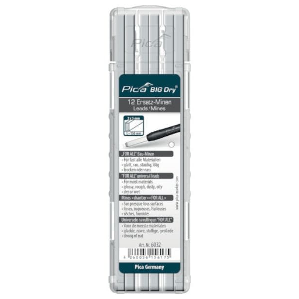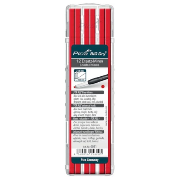 ピカマーカー 4020 建築用シャープペンシル“Dry”用替芯 8本入り 赤黄(各2本)黒2B(4本)