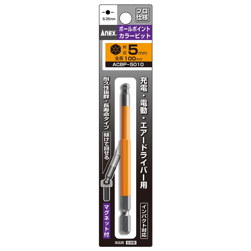 【メール便対応】アネックス ACBP-5010 ボールポイントカラ-ビット1本組 対辺5×100 ACBP-5010