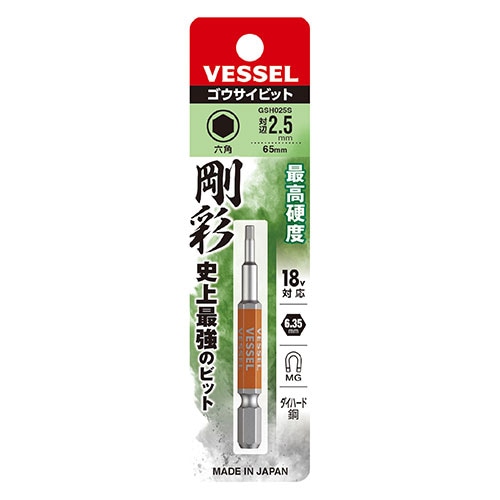 【メール便対応】ベッセル GSH025S 剛彩ビット 片頭ヘックス (H2.5×65) (GSH025S)