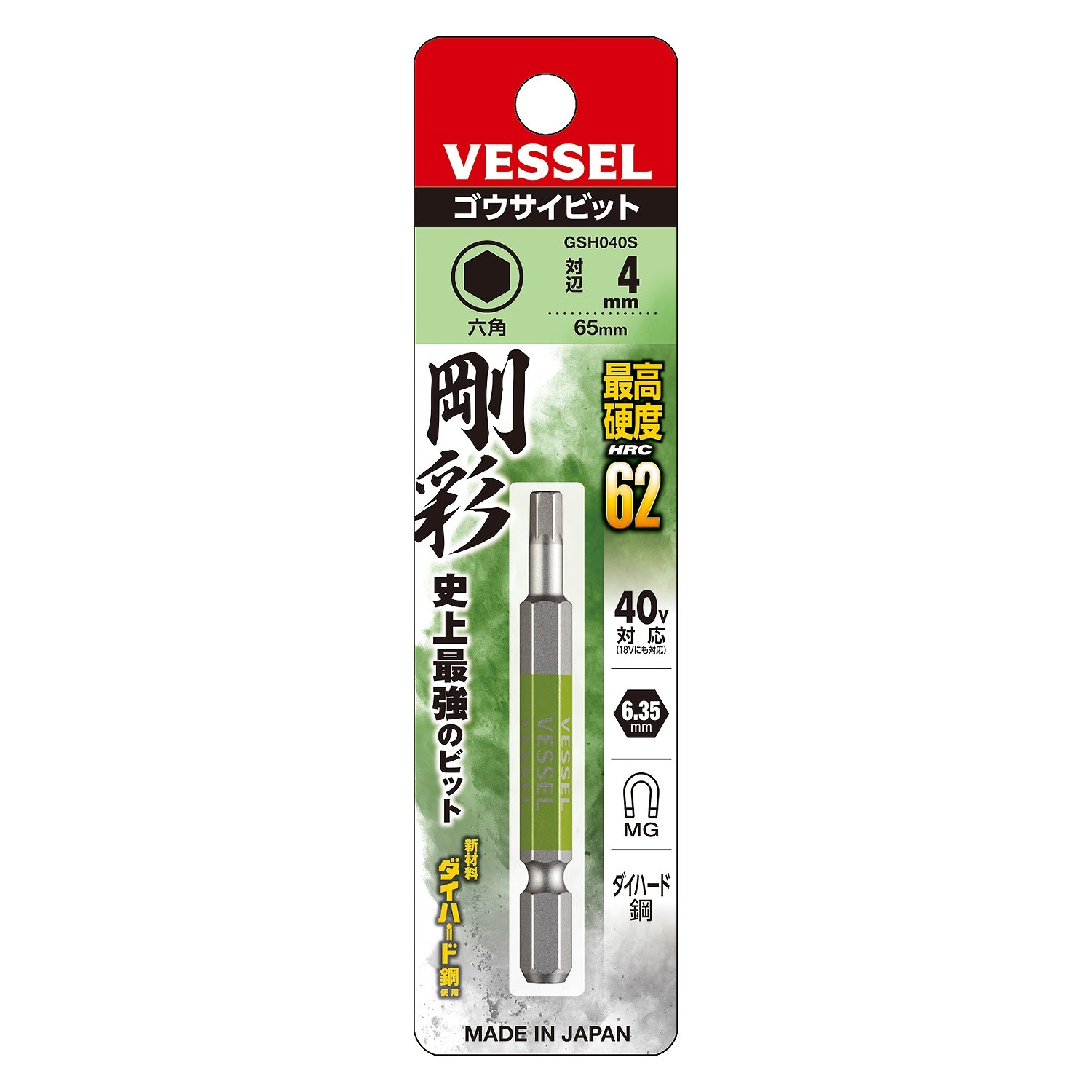 【メール便対応】ベッセル GSH040S 剛彩ビット 片頭ヘックス (H4×65) (GSH040S)