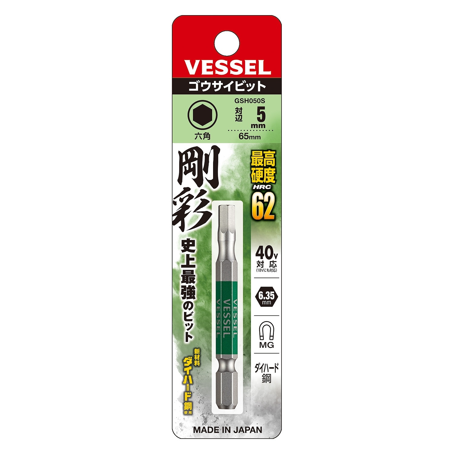 【メール便対応】ベッセル GSH050S 剛彩ビット 片頭ヘックス (H5×65) (GSH050S)