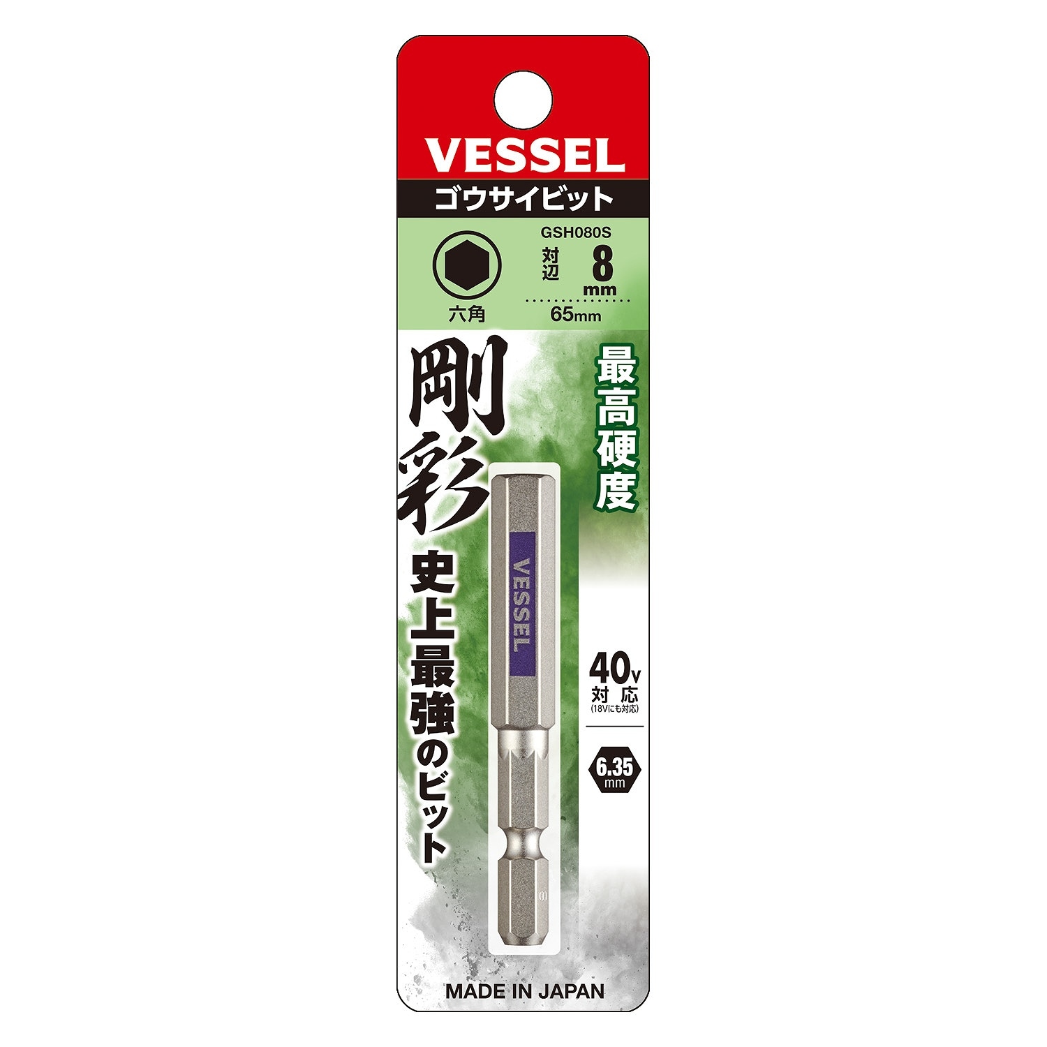 【メール便対応】ベッセル GSH080S 剛彩ビット 片頭ヘックス (H8×65) (GSH080S)