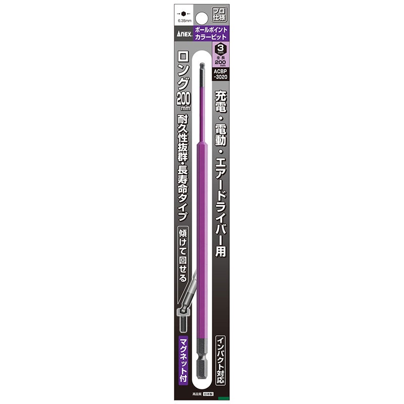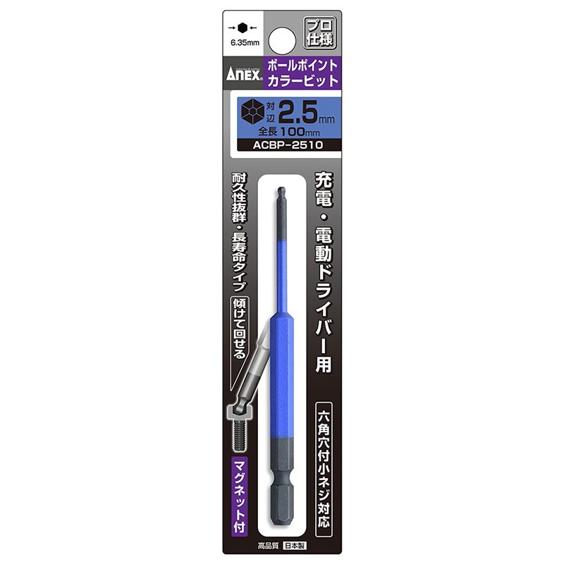 【メール便対応】アネックス ACBP-3010 ボールポイントカラービット1本組 対辺3×100 ACBP-3010