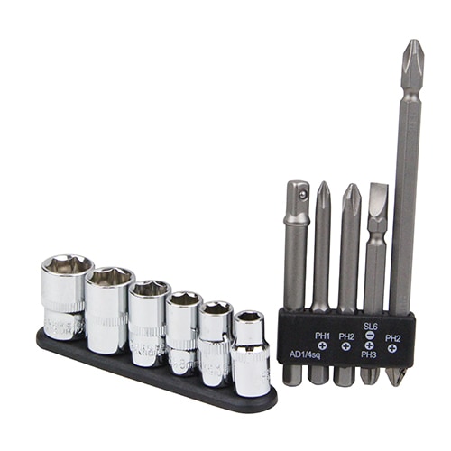 ソケット&ヘックスの充実したビットセットです。ビット4本、アダプター1本、ソケット6個、ホルダー付き。.....
