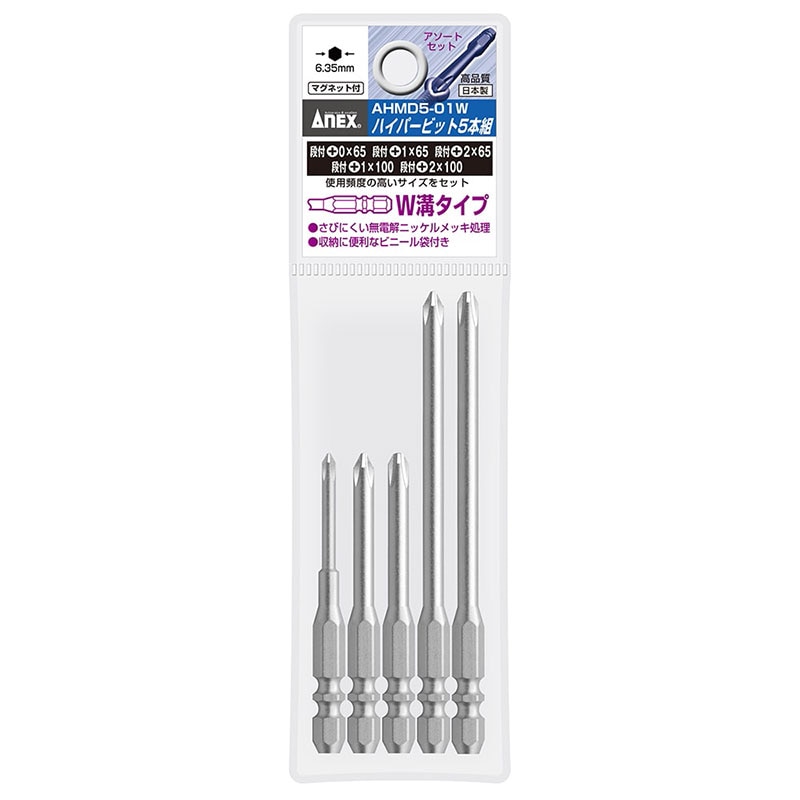 【メール便対応】アネックス ハイパービット5本組 段付 アソートセット W溝タイプ AHMD5-01W