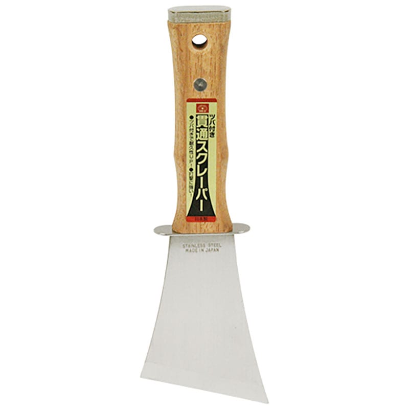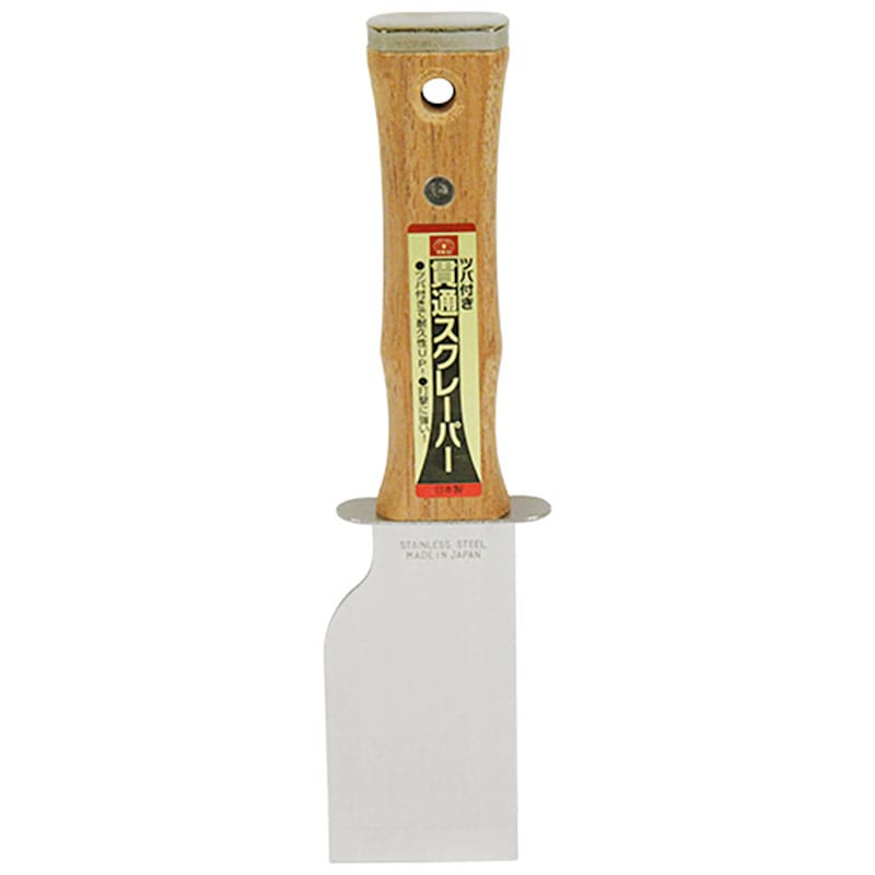 安全・安心の日本製です。ペンキはがし作業等。タフな貫通式のスクレーパーです。ツバ付きで耐久性UP、打撃に強いです。.....