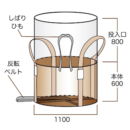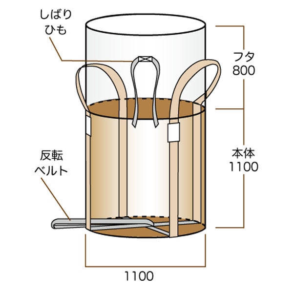 【特価:数量割引有】フレコンバッグ 1t用 丸型ワンウェイ TS002 (1100φ×H1100mm) 1枚