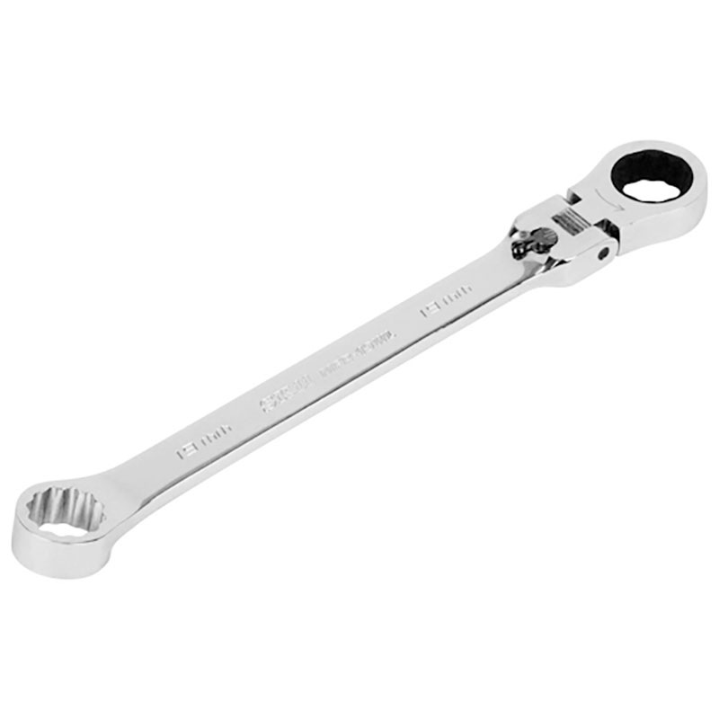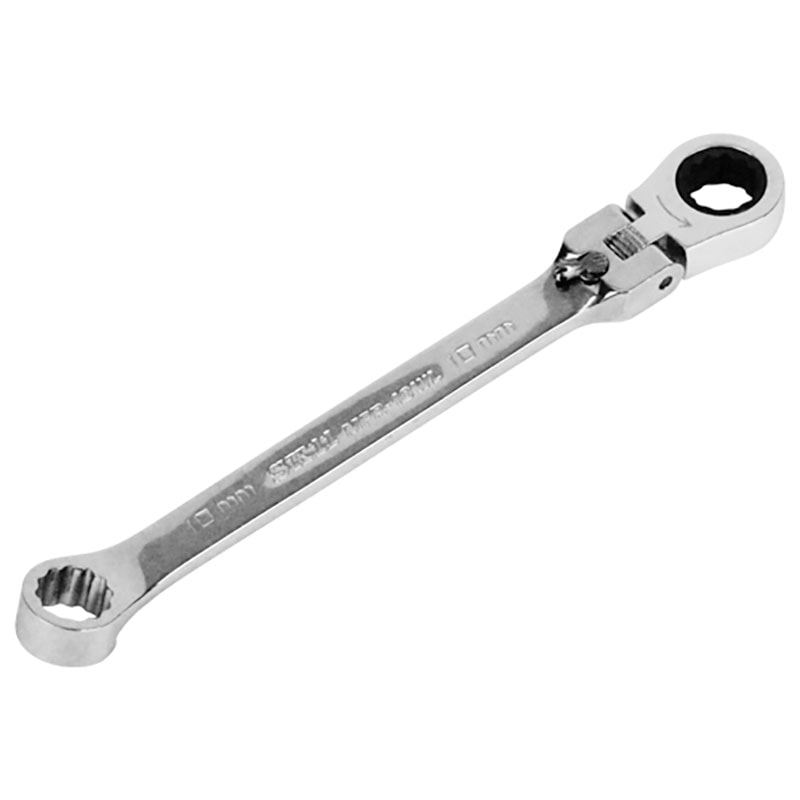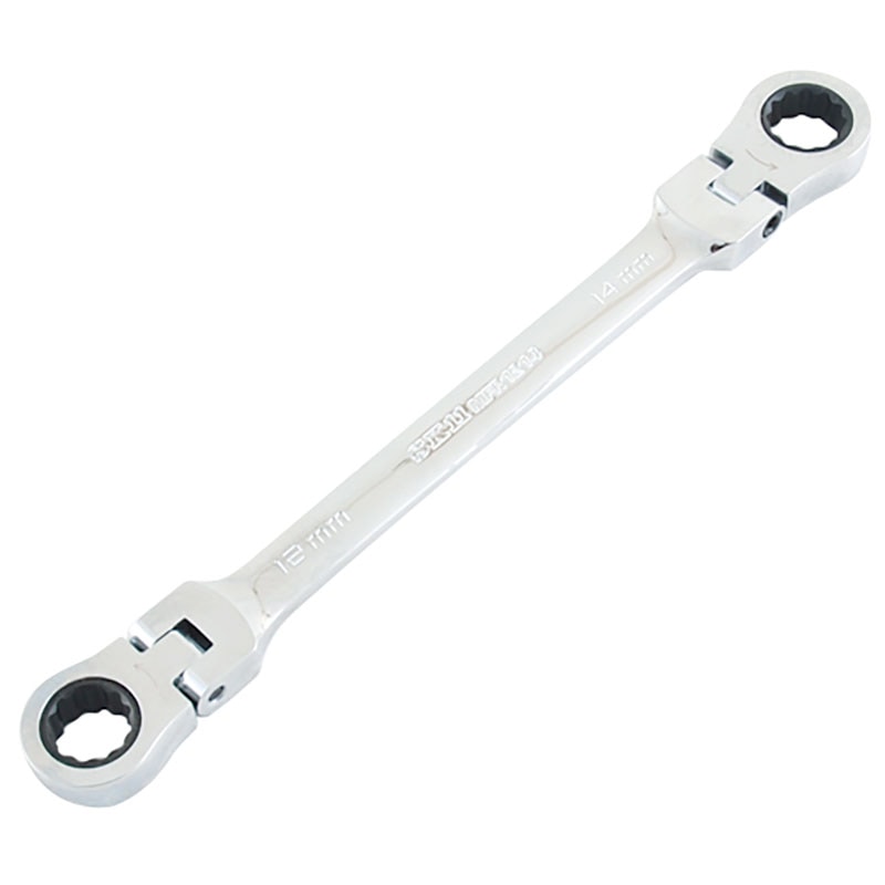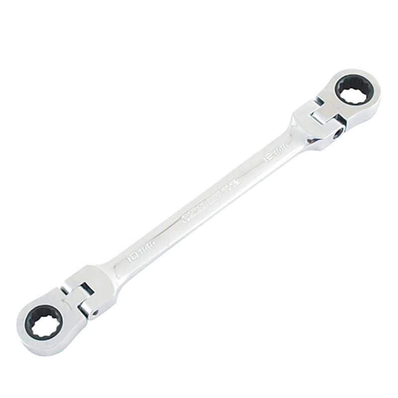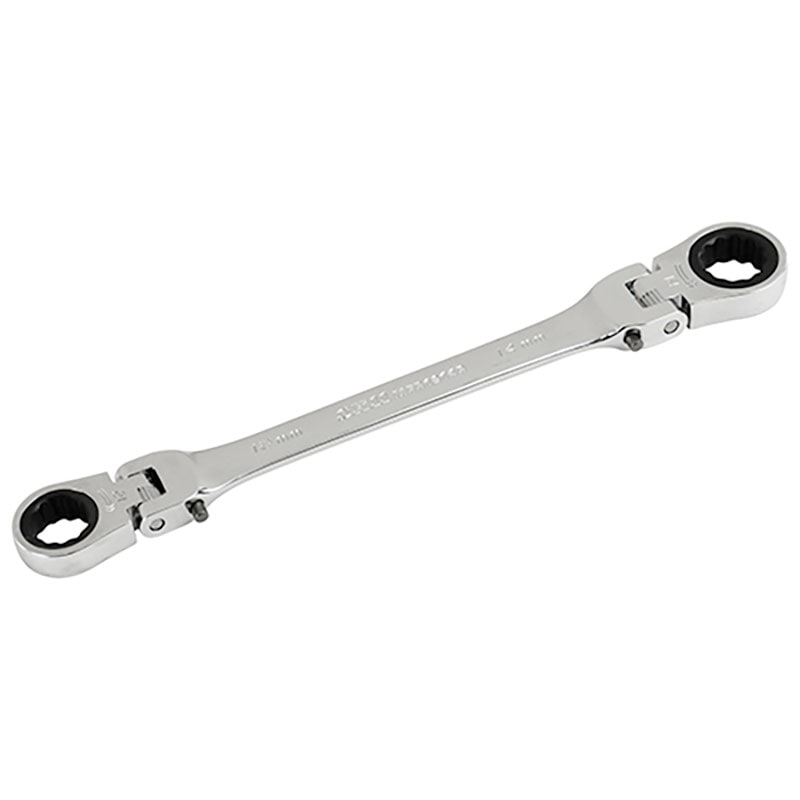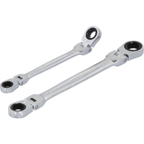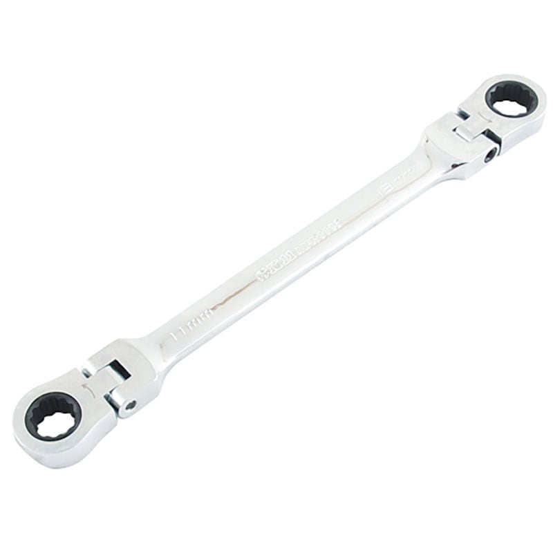 両側にラチェット機構のついためがね部を設け、1丁で2サイズに対応できます。両ヘッドともに任意の角度調整が可能なため、奥ま.....