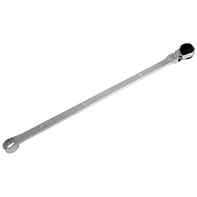 超ロングサイズのため奥深い箇所の作業に最適です。めがね側で高トルク作業を行い、首振機構付のラチェットめがね側で早回し作業.....