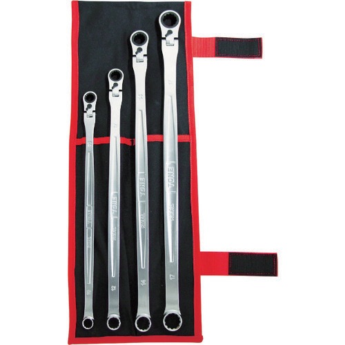 TONE ラチェットめがねレンチ 超ロング首振ラチェットめがねレンチセット 4点セット RMA400L