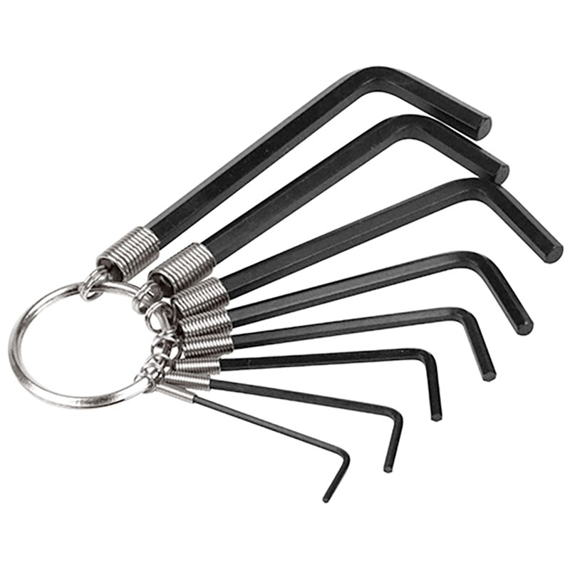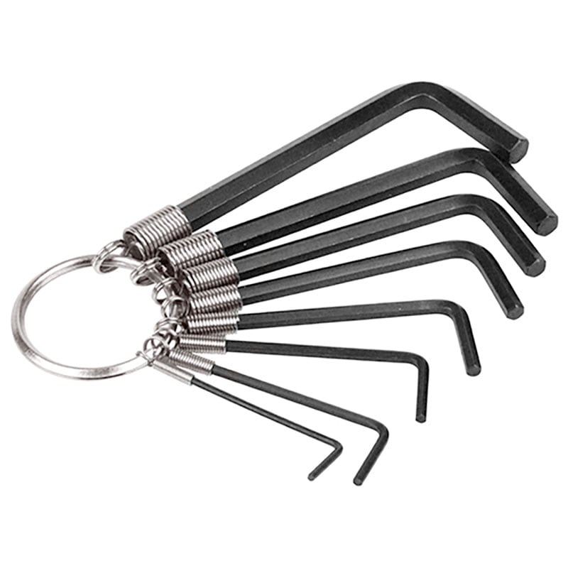 リング付き六角棒レンチセット8本組です。六角穴付ボルト・六角穴付き止めネジの締め付け、緩め作業。リング式なので、携帯に便.....