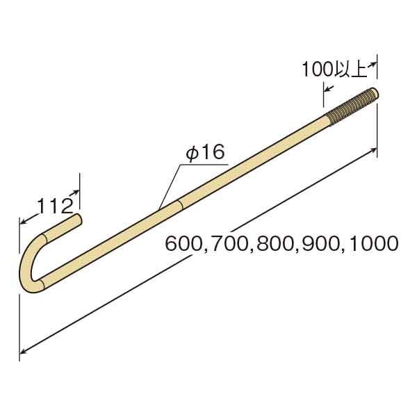 Zマーク アンカーボルト(M16)同等認定品 <用途> 基礎と土台およびホールダウン金物等の緊結に使用します。(M1.....