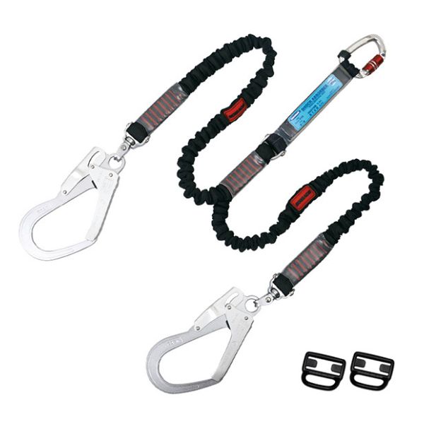 新規格対応のハーネス用ランヤード(ダブル)。 ゴム芯入りの伸縮性ランヤードの高生産モデルです。 EXJシリーズに比べて.....