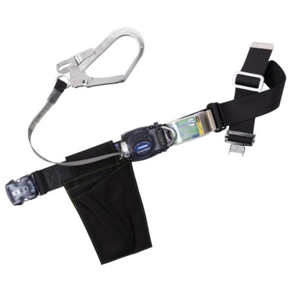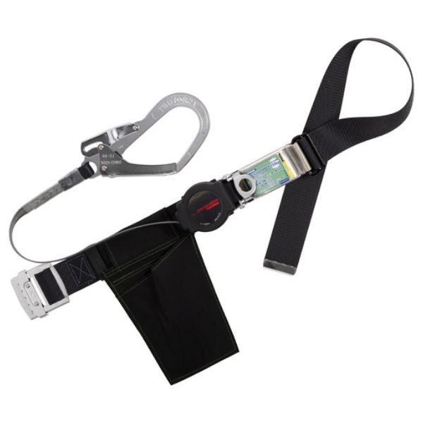 常時巻取りモードと好みの長さで固定するモードの2モード仕様の胴ベルト型墜落防止器具です。バックルは軽いアルミ製です。外部.....