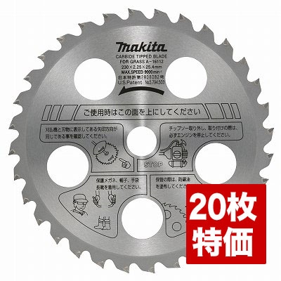 【20枚特価】マキタ 草刈機・刈払機用 ファインチップソー (外径230)A-16112(20枚セット)