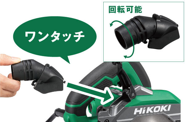 - 新並行度微調整構造、高効率の脱着式集じんアダプタなど、使い勝手の良い165mmAC深切り丸のこ